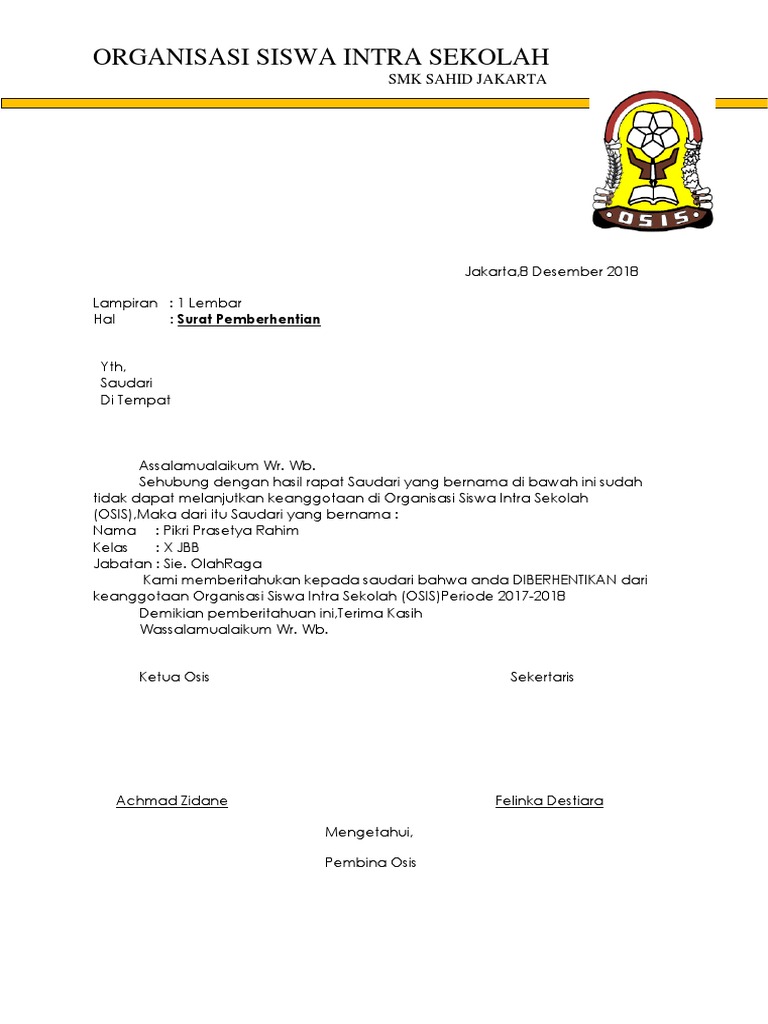Related : Contoh Surat Pengeluaran Anggota Osis - We did not find results for:.